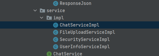 函数功能是进行聊天内容的实现,我们首先将chatservice做成了接口然后分别来进行实现。