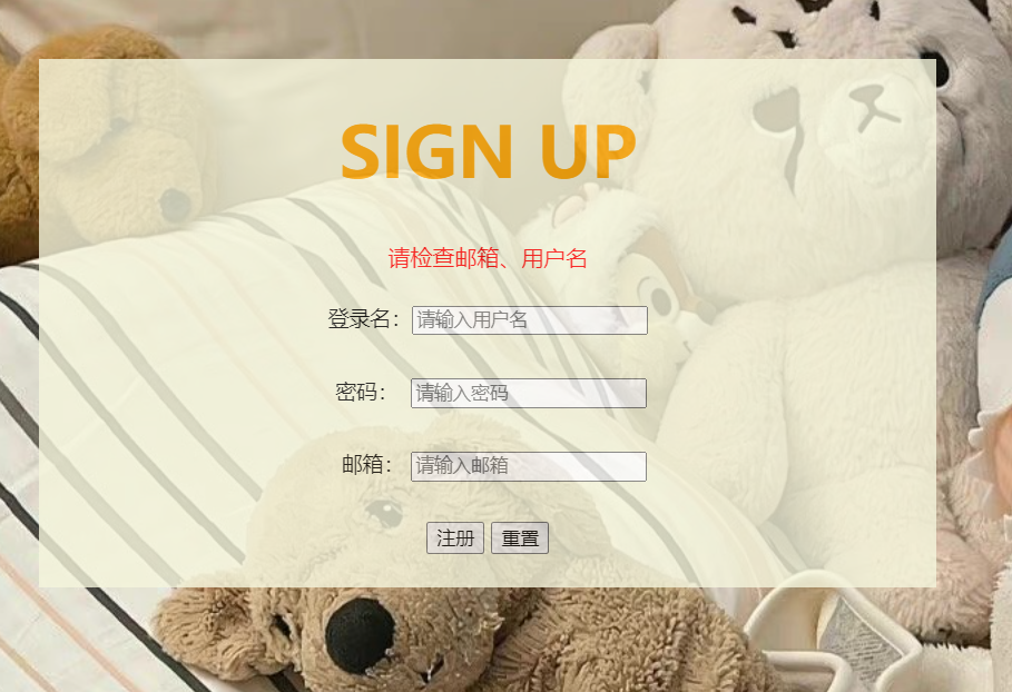 在注册中,我们也实现了检验功能,若输入不正确的信息,则显示: