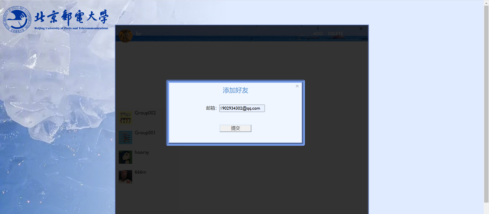 点击ADD,添加好友,通过输入好友Caicai邮箱进行添加: