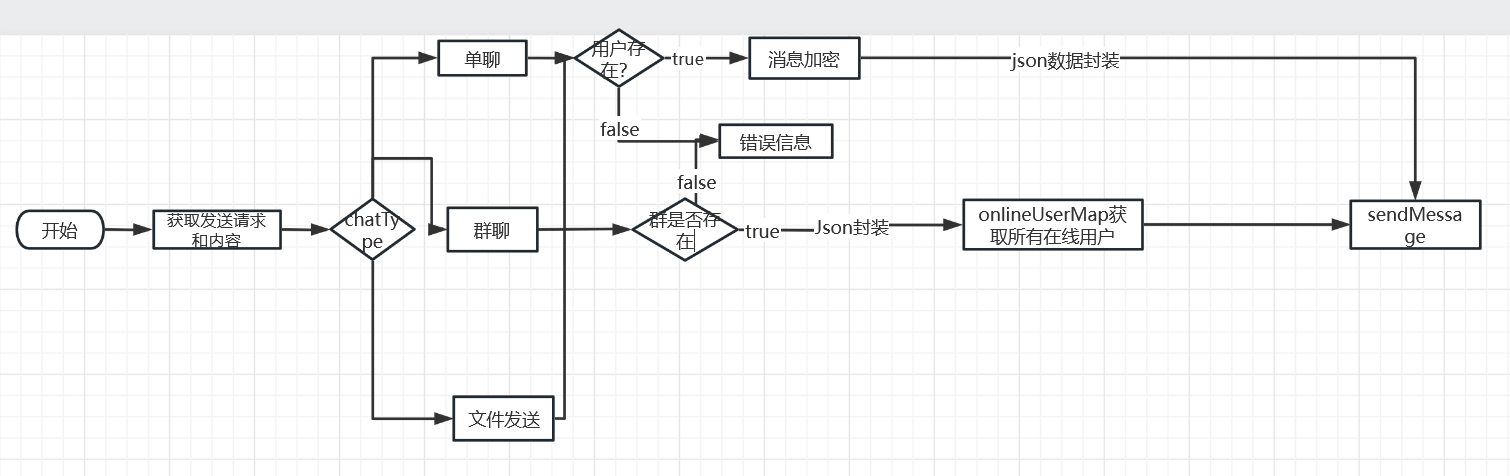 - 群聊发送模块(Group Send Module):处理用户发送的群聊消息。接收发送方的用户ID、群组ID以及消息内容,查询群组信息,将消息发送给群组中的在线成员(除了发送方本身),实现群组内的消息广播功能。