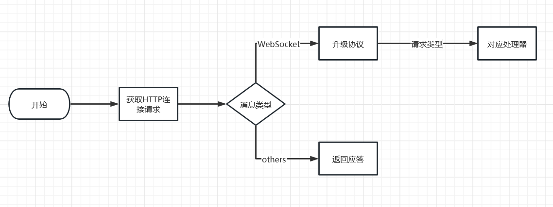 - HTTP请求处理模块 :接收HTTP请求消息,通过判断消息类型,将WebSocket请求交给下一个处理器,而将其他类型的HTTP请求进行处理。